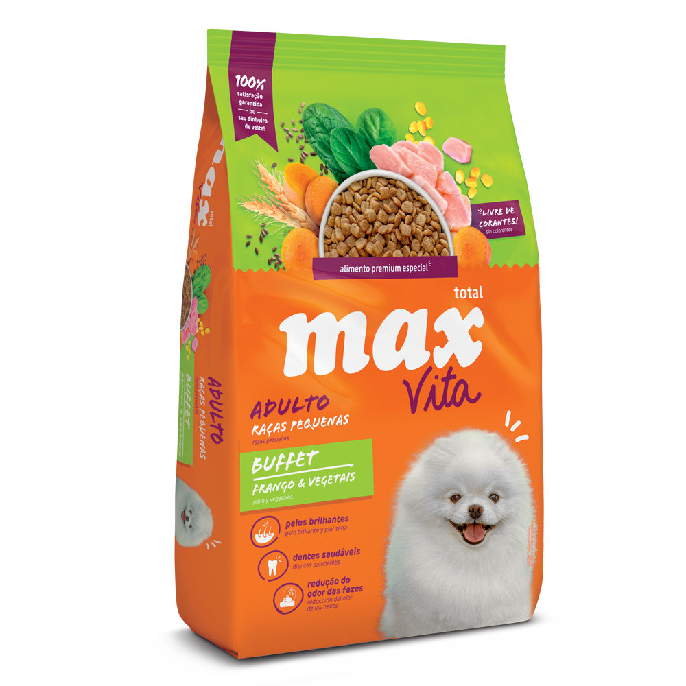 Alimento para Adultos Razas Pequeñas que asegura una alimentación saludable, pues toda la línea Max Vita cuenta con el sello Vita Complex, que garantiza alimentos 100% balanceados.
